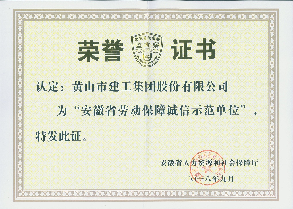 這是我公司第三次獲得“安徽省勞動保障誠信示范單位”榮譽(yù)。