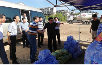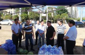 烈日下的八一大橋項目現(xiàn)場一片繁忙景象,工人們有的在支模、有的在焊接鋼筋、有的在澆筑砼,一切都井然有序,忙而不亂。屯溪區(qū)區(qū)委書記江善良一行一到現(xiàn)場,就將一件件防暑降溫慰問品遞到在施工的工人們手中,并囑咐在高溫下施工的操作人員要多注意休息、及時補(bǔ)充水分和營養(yǎng),按項目部要求合理安排工作時間,避免中午高溫時間段施工,同時要求項目部積極做好防暑降溫工作,保障施工一線工人的生命安全。充分體現(xiàn)了屯溪區(qū)委、區(qū)政府等領(lǐng)導(dǎo)對我集團(tuán)公司的一片深情厚誼和關(guān)懷。