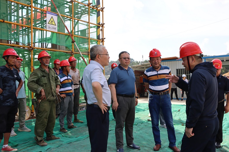在黃山市南部城鎮(zhèn)群水務(wù)調(diào)度中心項(xiàng)目、黃山生豬定點(diǎn)屠宰加工及配套設(shè)施項(xiàng)目及配套冷鏈項(xiàng)目施工現(xiàn)場(chǎng),城投集團(tuán)總裁黃世穩(wěn)、黨委副書(shū)記汪蓉、副總裁朱愛(ài)民等一行將慰問(wèn)品送到一線職工手中,并和大家親切交談,細(xì)致了解大家的生活工作情況,總裁黃世穩(wěn)叮囑要注意勞逸結(jié)合,合理安排作息時(shí)間,做好防暑降溫工作,確保實(shí)現(xiàn)安全生產(chǎn)。