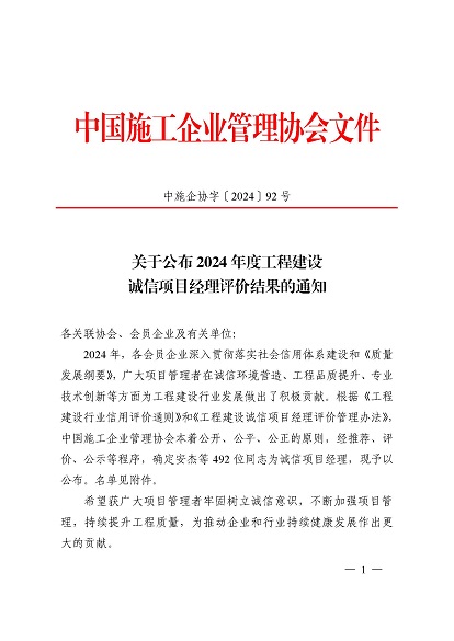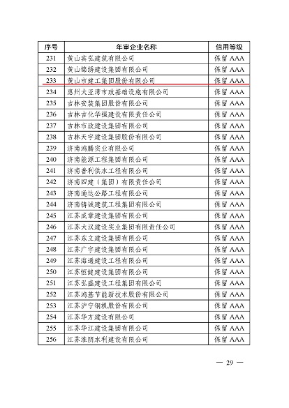 近日,中國(guó)施工企業(yè)管理協(xié)會(huì)公布了2024年度第一批工程建設(shè)企業(yè)信用等級(jí)評(píng)價(jià)結(jié)果的通知、工程建設(shè)誠(chéng)信企業(yè)家評(píng)價(jià)結(jié)果、工程建設(shè)誠(chéng)信項(xiàng)目經(jīng)理名單。黃山建工集團(tuán)順利通過(guò)AAA級(jí)信用企業(yè)的年審,繼續(xù)保持AAA信用等級(jí)的殊榮。黃山建工集團(tuán)總經(jīng)理葉金發(fā)獲評(píng)誠(chéng)信企業(yè)家,項(xiàng)目經(jīng)理畢星豪獲評(píng)誠(chéng)信項(xiàng)目經(jīng)理。此次榮譽(yù)是對(duì)黃山建工集團(tuán)在工程建設(shè)領(lǐng)域的綜合實(shí)力和誠(chéng)信經(jīng)營(yíng)的高度認(rèn)可。